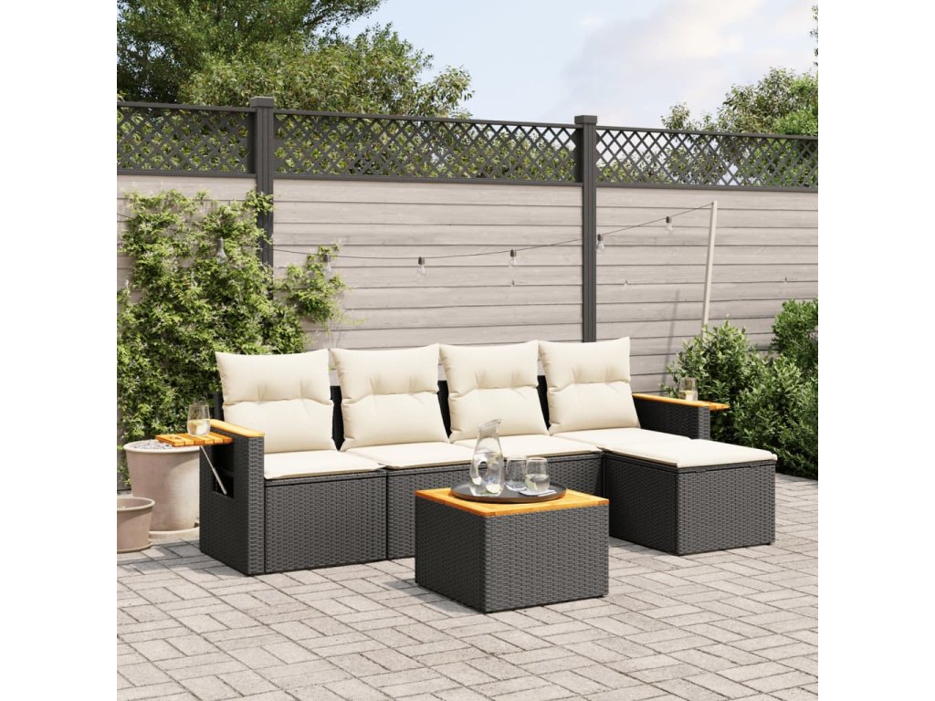 6dílná zahradní sedací souprava s poduškami černá polyratan 3259165