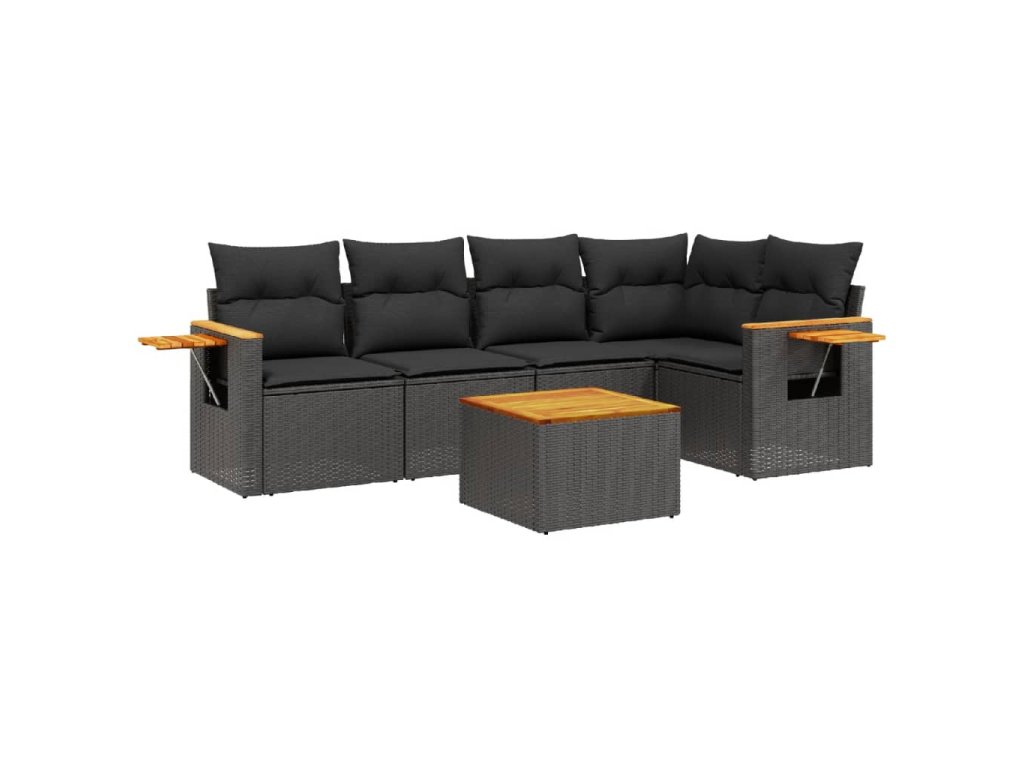 6dílná zahradní sedací souprava s poduškami černá polyratan 3259192