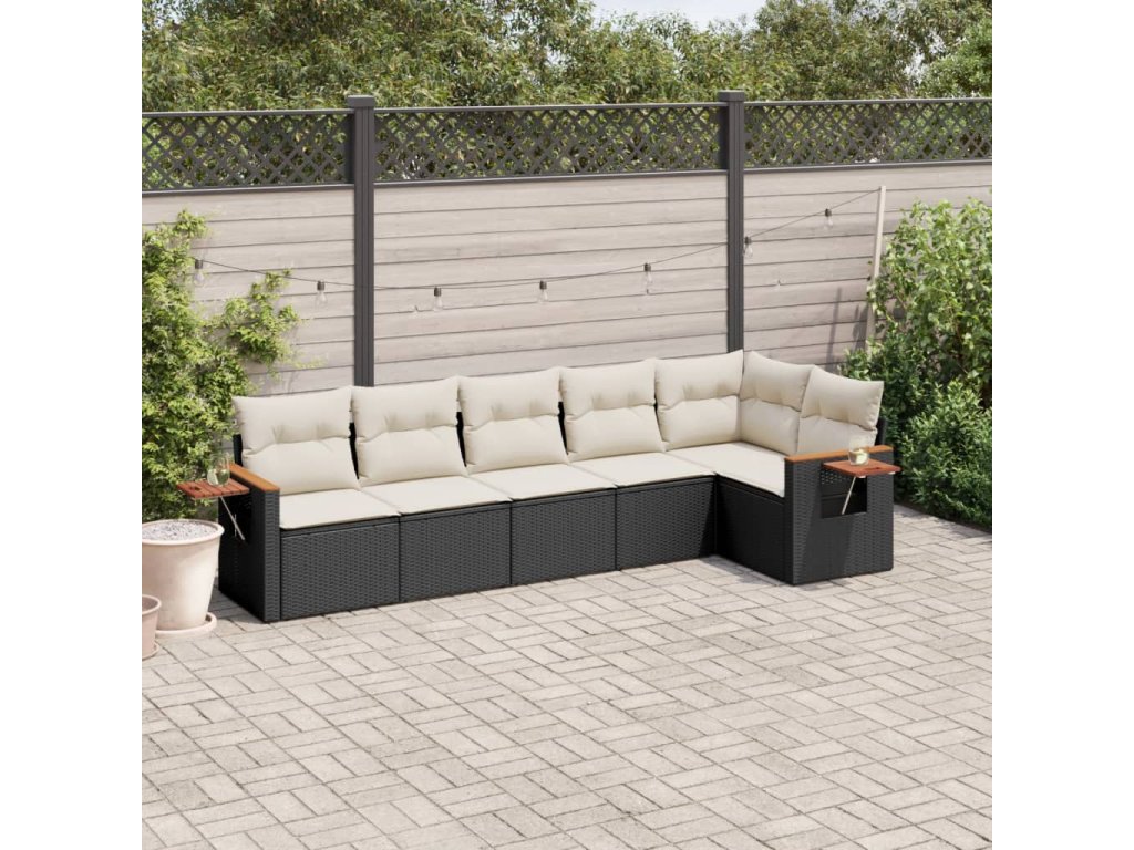 6dílná zahradní sedací souprava s poduškami černá polyratan 3259228
