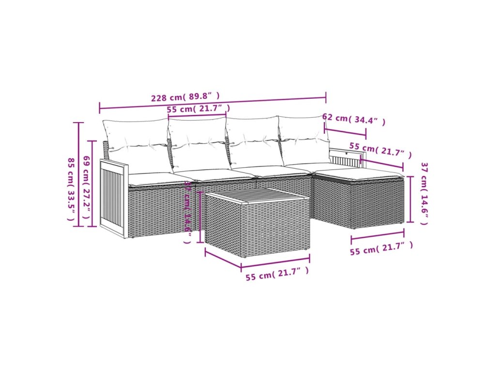 Tato zahradní sedací souprava je dokonalým doplňkem vaší zahrady, terasy nebo dvorku a poskytne vám pohodlné a příjemné místo, kde si můžete povídat s rodinou a přáteli nebo jen tak odpočívat a užívat si pobyt venku.