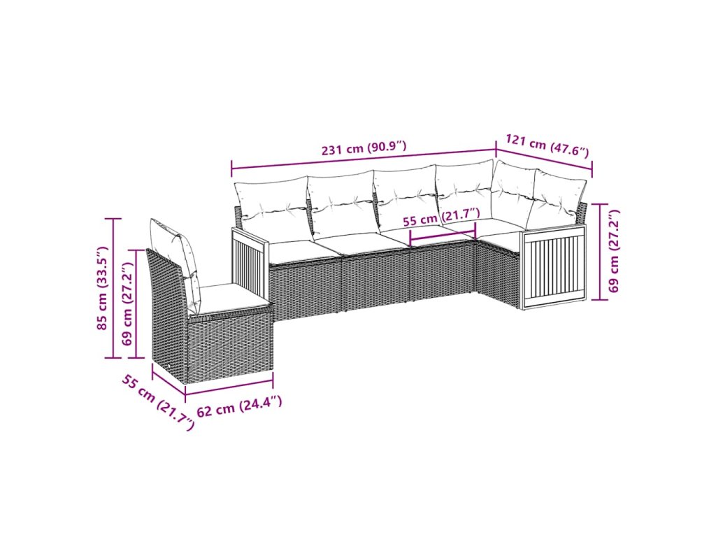 Tato zahradní sedací souprava je dokonalým doplňkem vaší zahrady, terasy nebo dvorku a poskytne vám pohodlné a příjemné místo, kde si můžete povídat s rodinou a přáteli nebo jen tak odpočívat a užívat si pobyt venku.