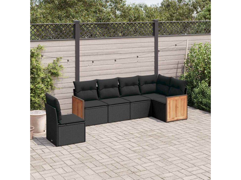 6dílná zahradní sedací souprava s poduškami černá polyratan 3260095