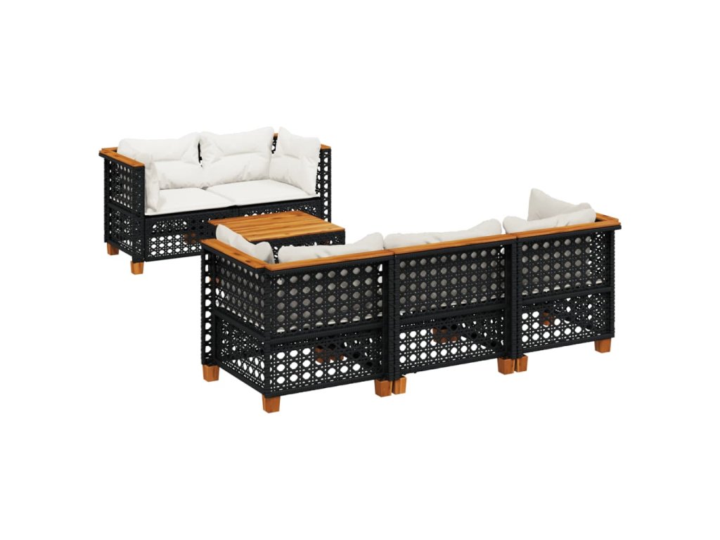 6dílná zahradní sedací souprava s poduškami černá polyratan 3261734