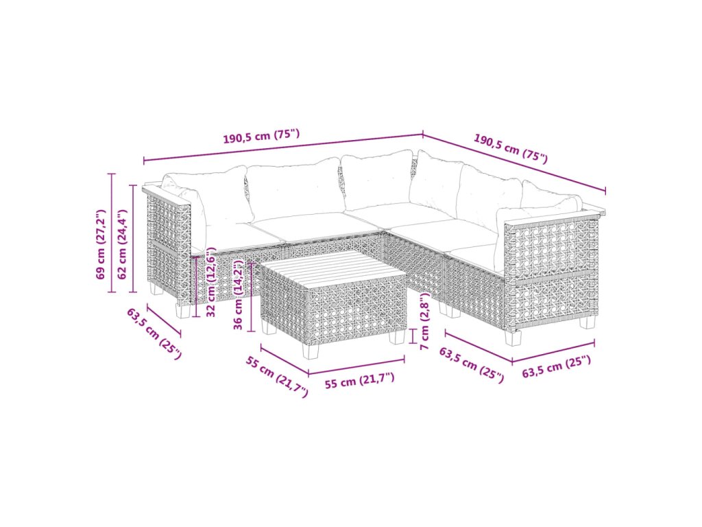 Tato zahradní sedací souprava je dokonalým doplňkem vaší zahrady, terasy nebo dvorku a poskytne vám pohodlné a příjemné místo, kde si můžete povídat s rodinou a přáteli nebo jen tak odpočívat a užívat si pobyt venku.