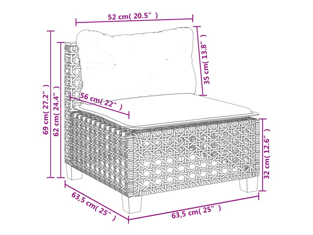 - Rozměry podušky na sedák (středový díl): 63,5 x 56,5 x 3 cm (Š x H x T)