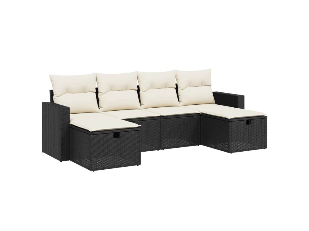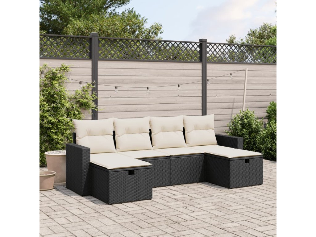 6dílná zahradní sedací souprava s poduškami černá polyratan 3263542