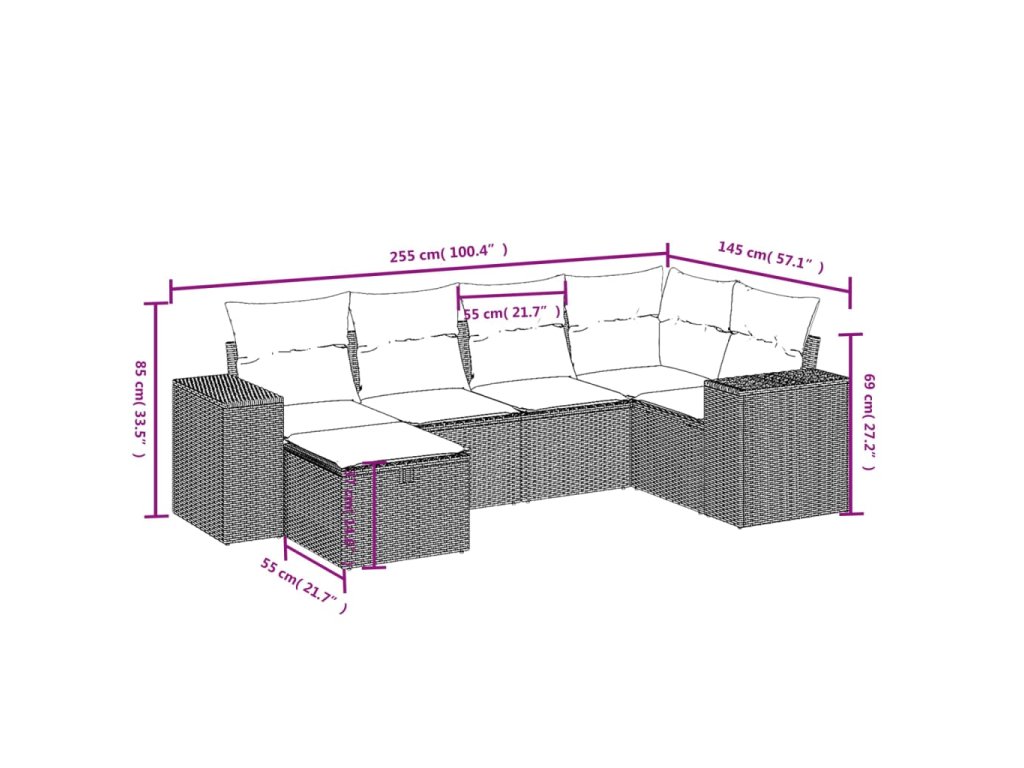 Tato zahradní sedací souprava je dokonalým doplňkem vaší zahrady, terasy nebo dvorku a poskytne vám pohodlné a příjemné místo, kde si můžete povídat s rodinou a přáteli nebo jen tak odpočívat a užívat si pobyt venku.