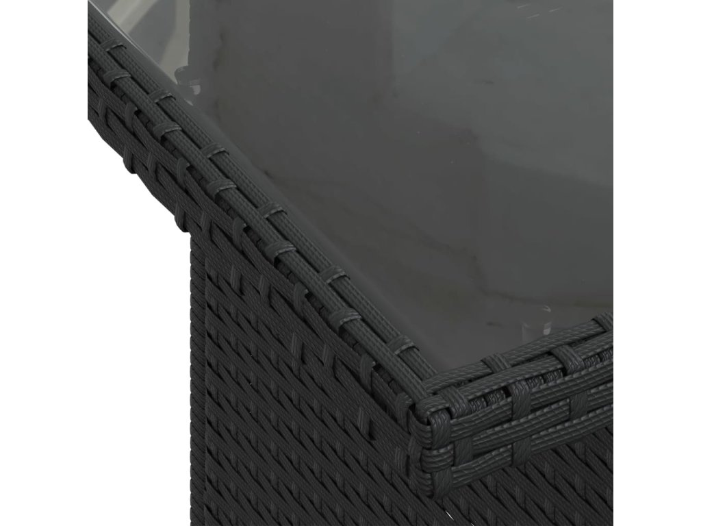 - Materiál: PE ratan, práškově lakovaná ocel, tvrzené sklo