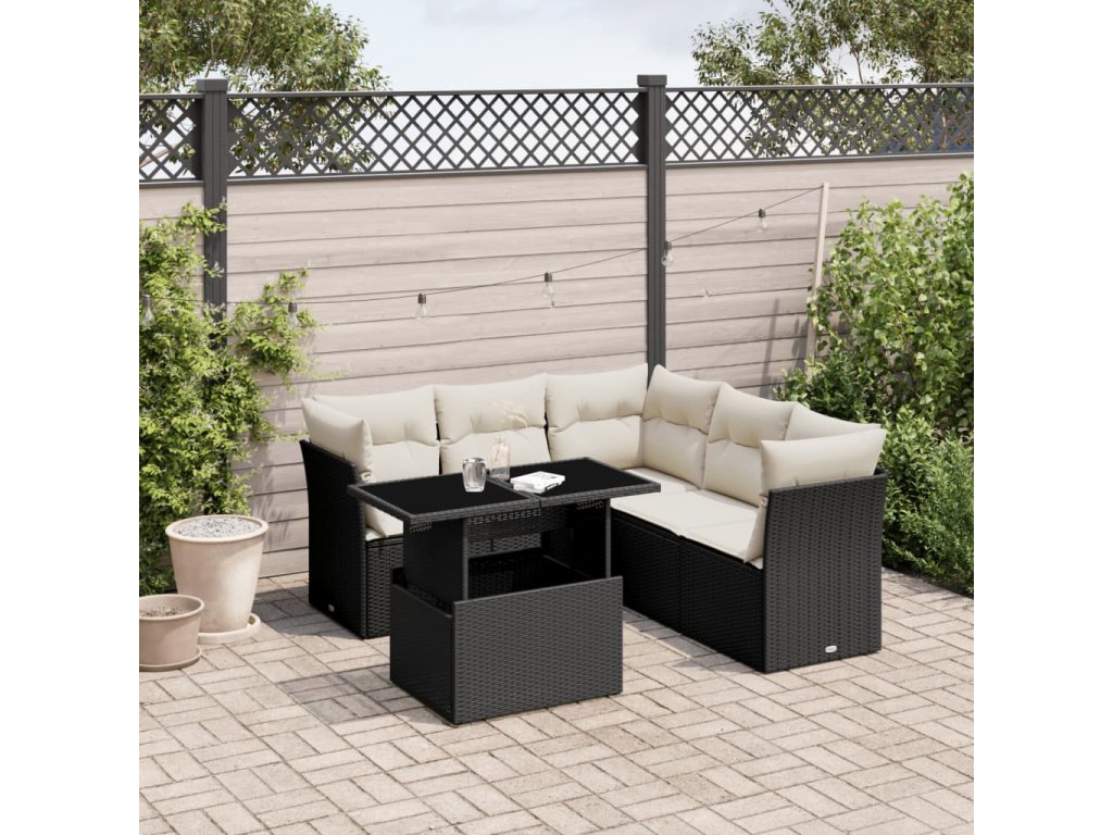 6dílná zahradní sedací souprava s poduškami černá polyratan 3266576