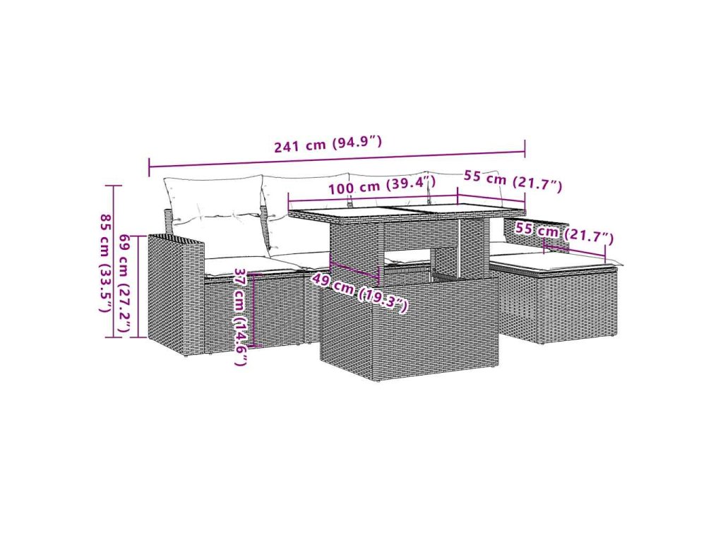 Tato zahradní sedací souprava je dokonalým doplňkem vaší zahrady, terasy nebo dvorku a poskytne vám pohodlné a příjemné místo, kde si můžete povídat s rodinou a přáteli nebo jen tak odpočívat a užívat si pobyt venku.