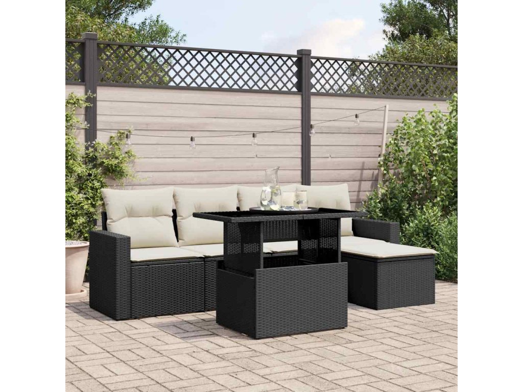 6dílná zahradní sedací souprava s poduškami černá polyratan 3267236