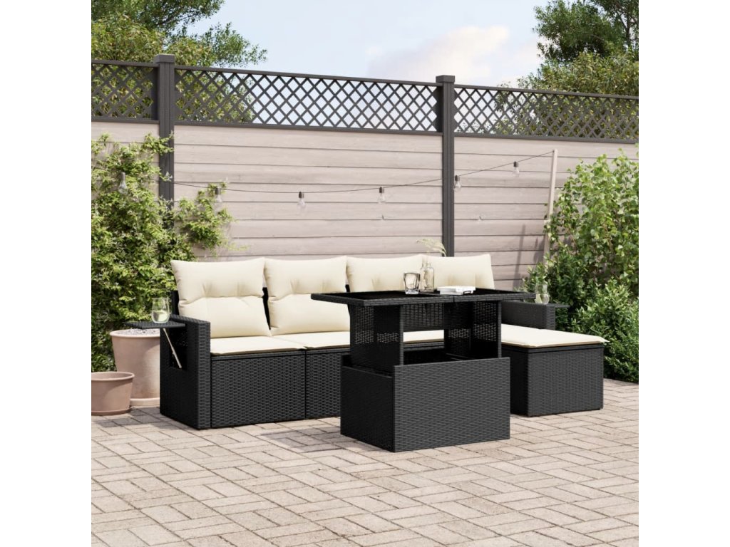 6dílná zahradní sedací souprava s poduškami černá polyratan 3267866
