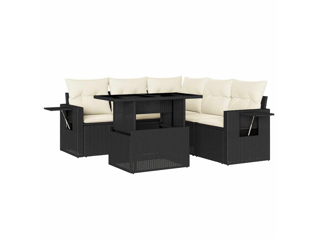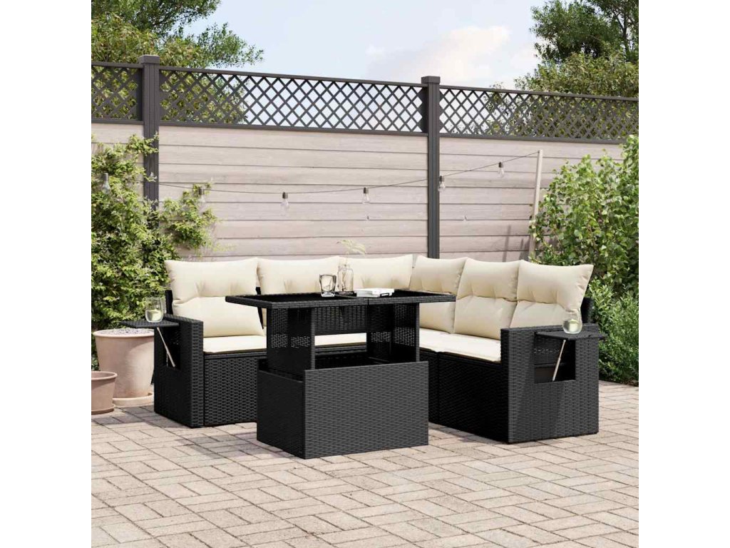 6dílná zahradní sedací souprava s poduškami černá polyratan 3267896