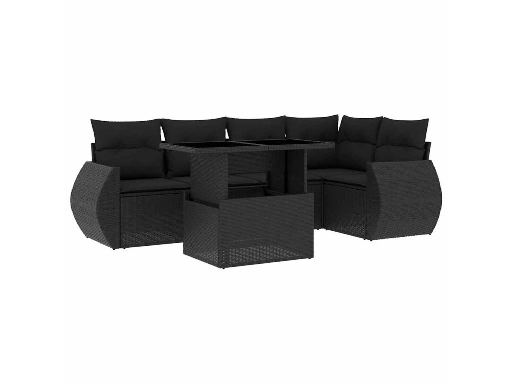 6dílná zahradní sedací souprava s poduškami černá polyratan 3268515