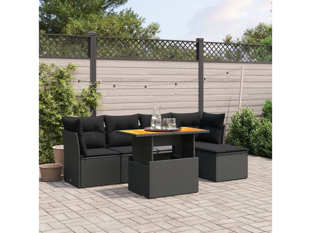 6dílná zahradní sedací souprava s poduškami černá polyratan 3270803
