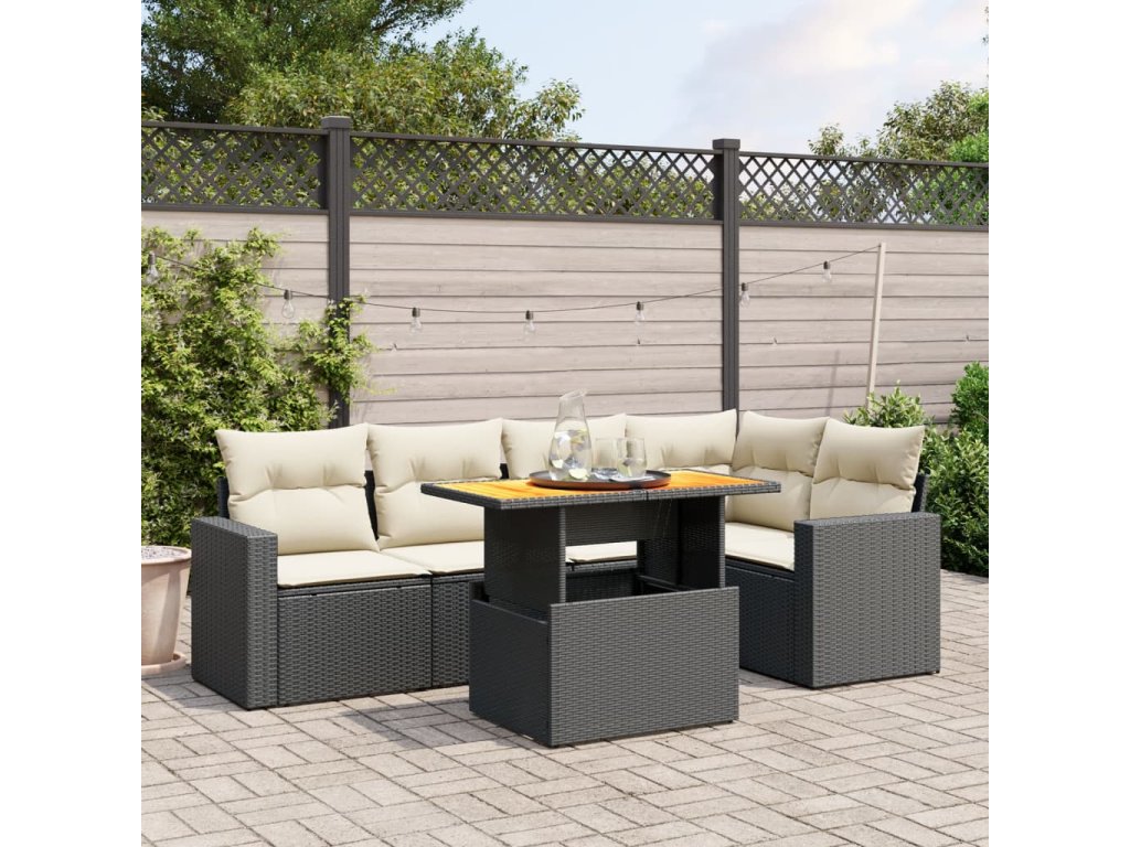 6dílná zahradní sedací souprava s poduškami černá polyratan 3271301