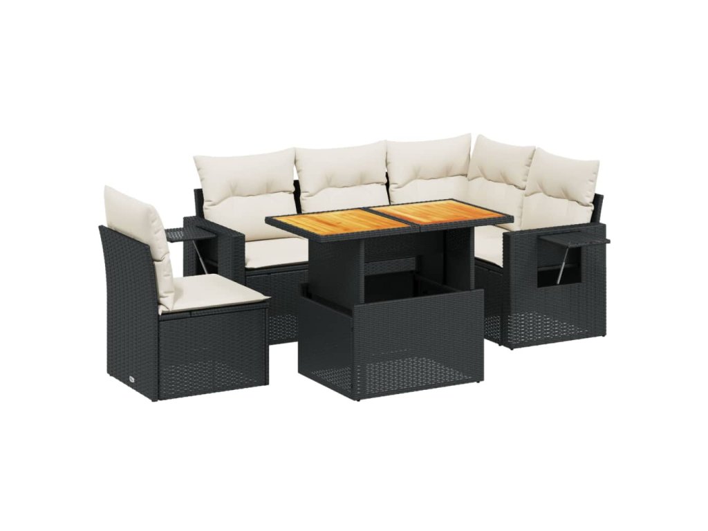 6dílná zahradní sedací souprava s poduškami černá polyratan 3271756