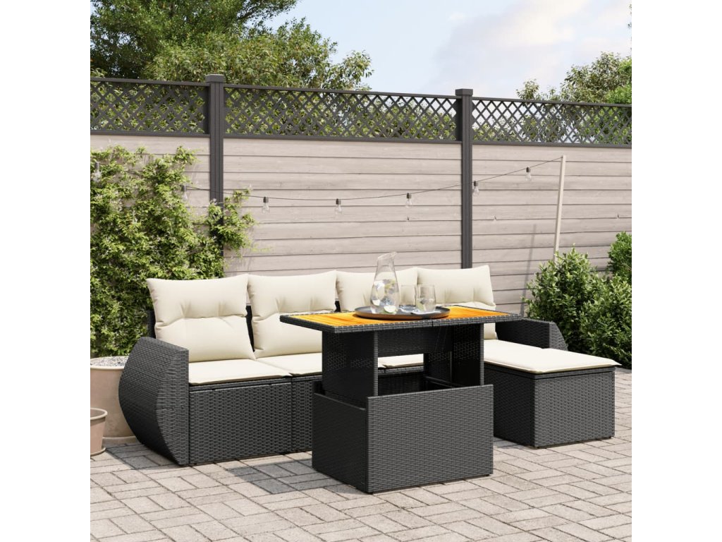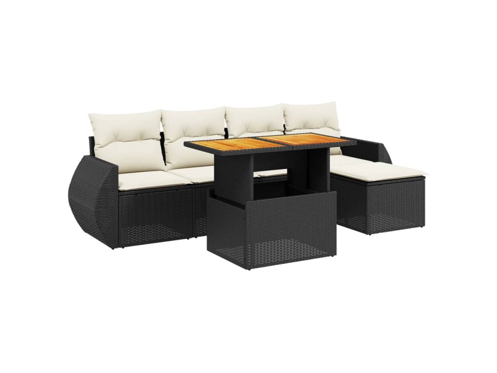 6dílná zahradní sedací souprava s poduškami černá polyratan 3272169