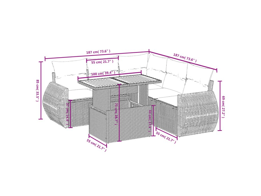Tato zahradní sedací souprava je dokonalým doplňkem vaší zahrady, terasy nebo dvorku a poskytne vám pohodlné a příjemné místo, kde si můžete povídat s rodinou a přáteli nebo jen tak odpočívat a užívat si pobyt venku.