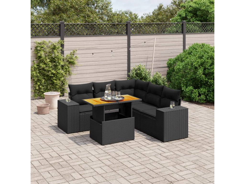 6dílná zahradní sedací souprava s poduškami černá polyratan 3272630