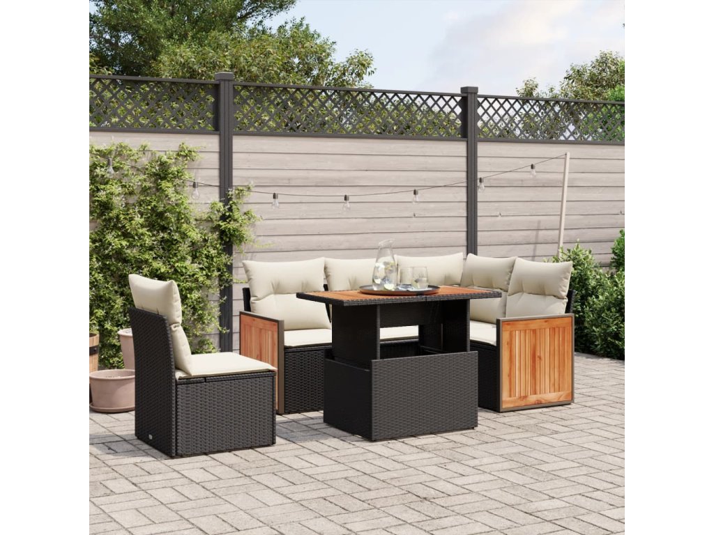 6dílná zahradní sedací souprava s poduškami černá polyratan 3273961