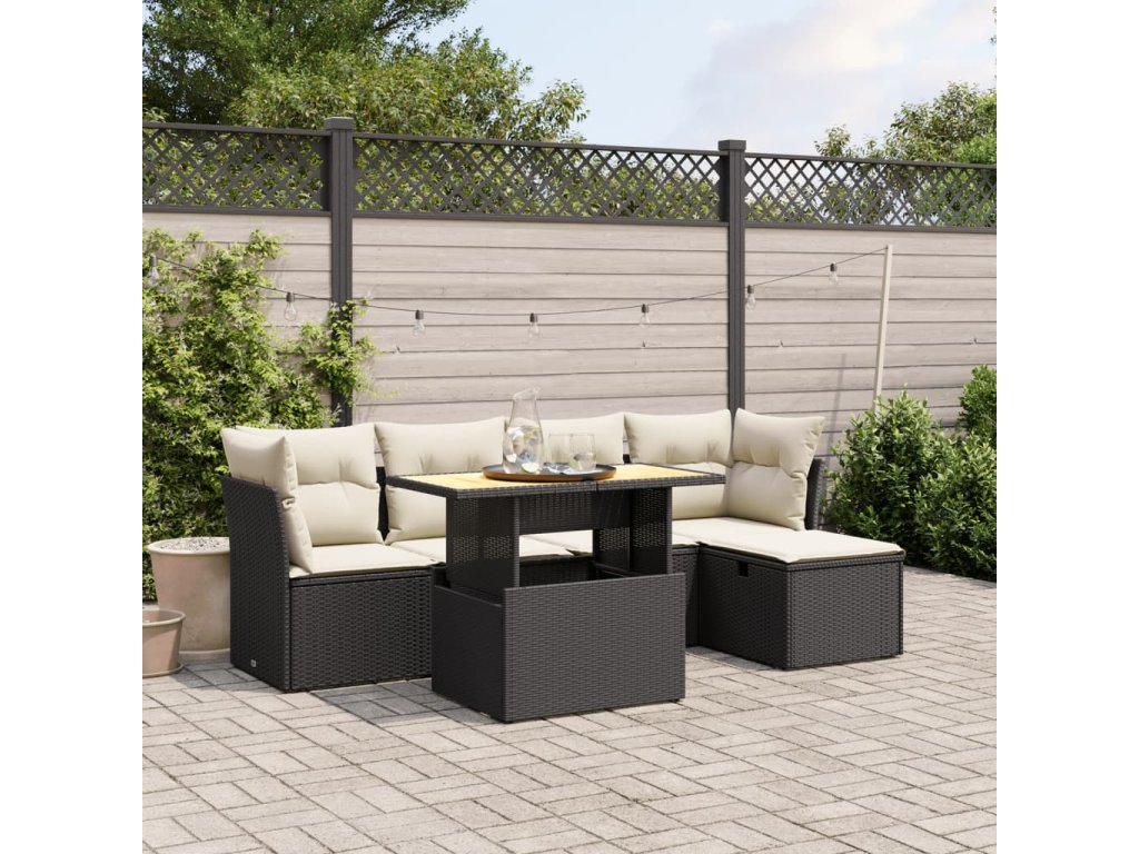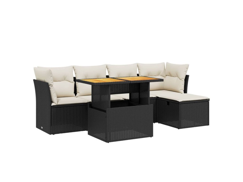 6dílná zahradní sedací souprava s poduškami černá polyratan 3275464