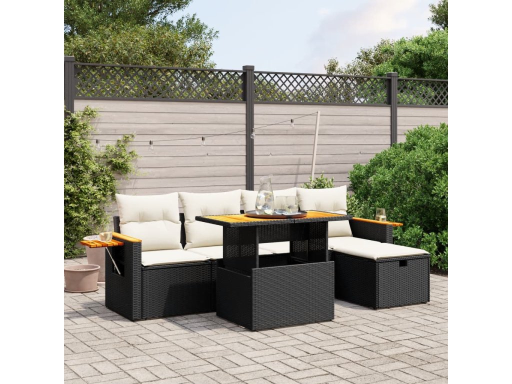 6dílná zahradní sedací souprava s poduškami černá polyratan 3276136