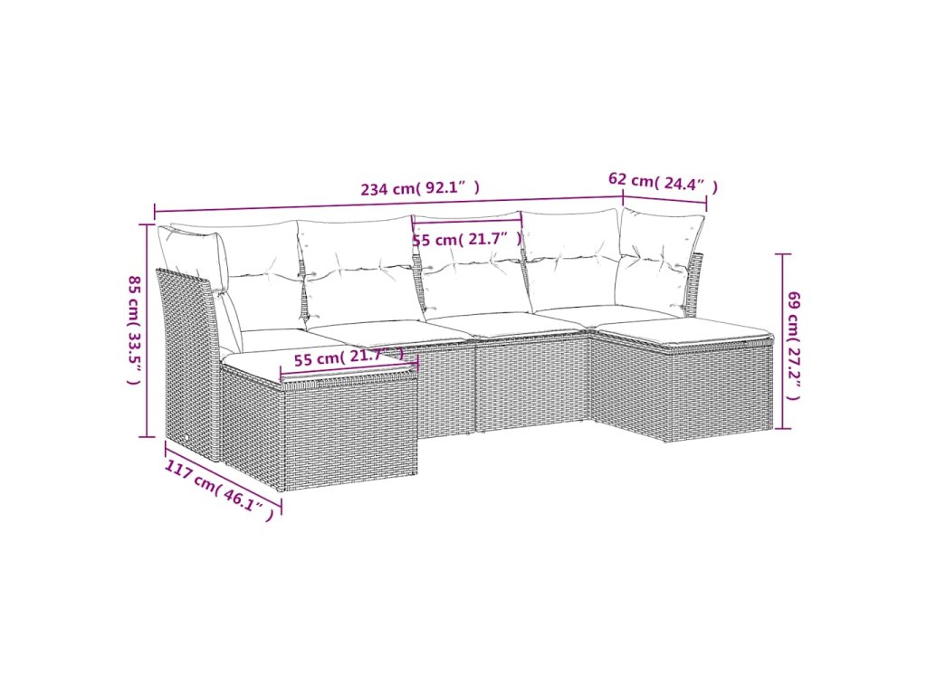 Tato zahradní sedací souprava je dokonalým doplňkem vaší zahrady, terasy nebo dvorku a poskytne vám pohodlné a příjemné místo, kde si můžete povídat s rodinou a přáteli nebo jen tak odpočívat a užívat si pobyt venku.