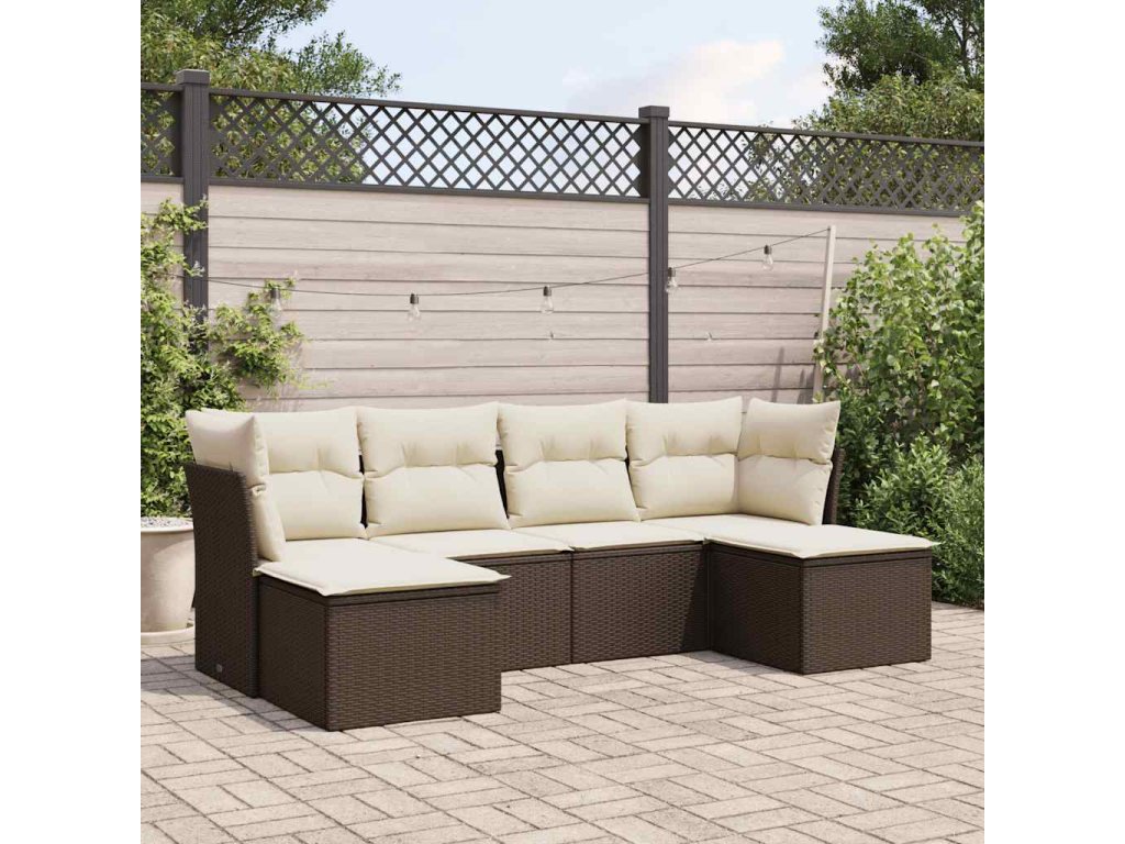6dílná zahradní sedací souprava s poduškami hnědá polyratan 3218013