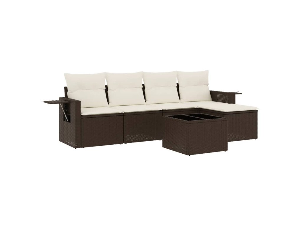 6dílná zahradní sedací souprava s poduškami hnědá polyratan 3220102