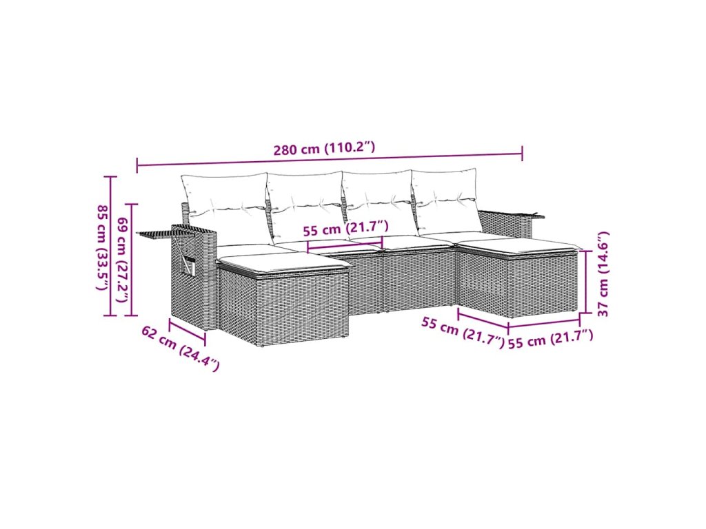 Tato zahradní sedací souprava je dokonalým doplňkem vaší zahrady, terasy nebo dvorku a poskytne vám pohodlné a příjemné místo, kde si můžete povídat s rodinou a přáteli nebo jen tak odpočívat a užívat si pobyt venku.