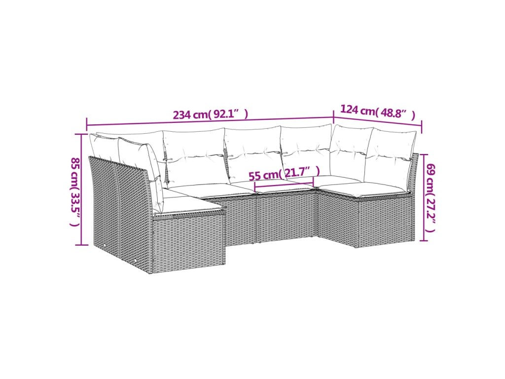 6dílná zahradní sedací souprava s poduškami hnědá polyratan 3249232