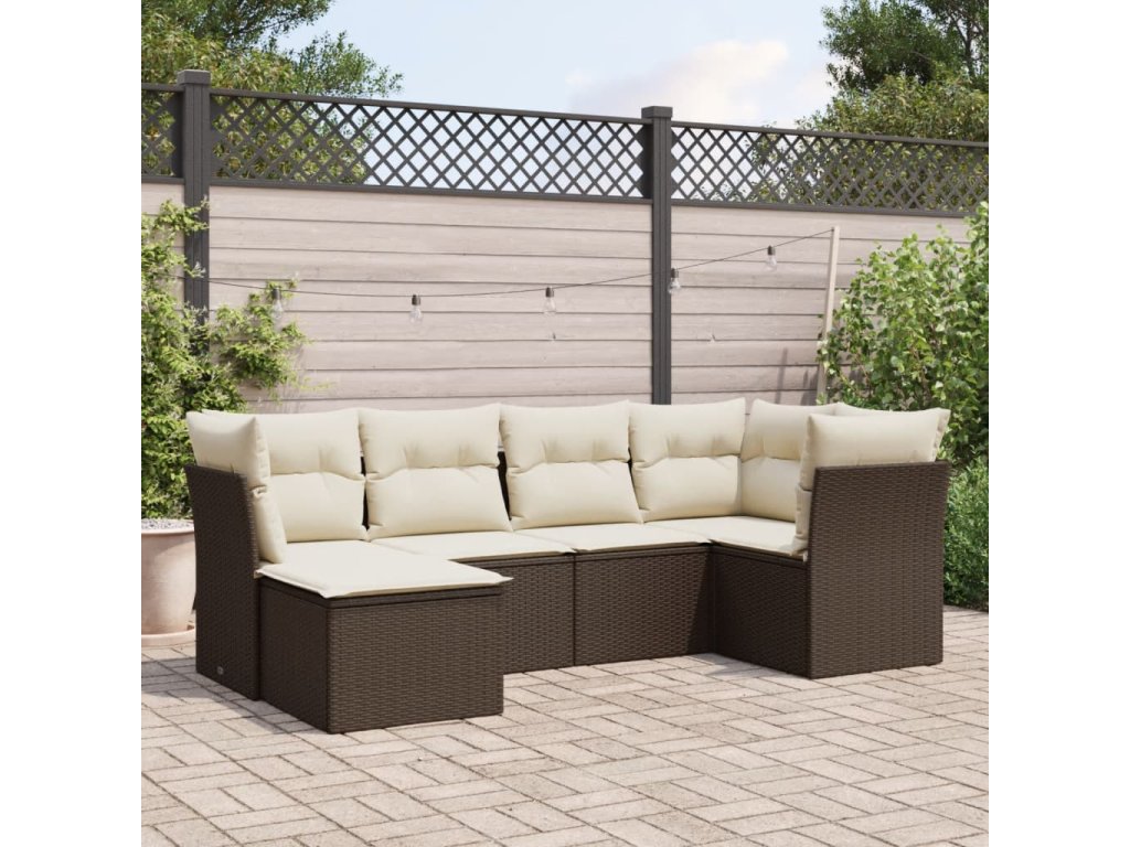 6dílná zahradní sedací souprava s poduškami hnědá polyratan 3249792
