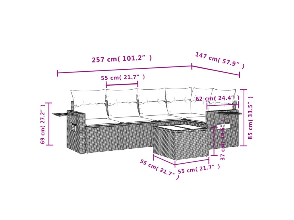 Tato zahradní sedací souprava je dokonalým doplňkem vaší zahrady, terasy nebo dvorku a poskytne vám pohodlné a příjemné místo, kde si můžete povídat s rodinou a přáteli nebo jen tak odpočívat a užívat si pobyt venku.