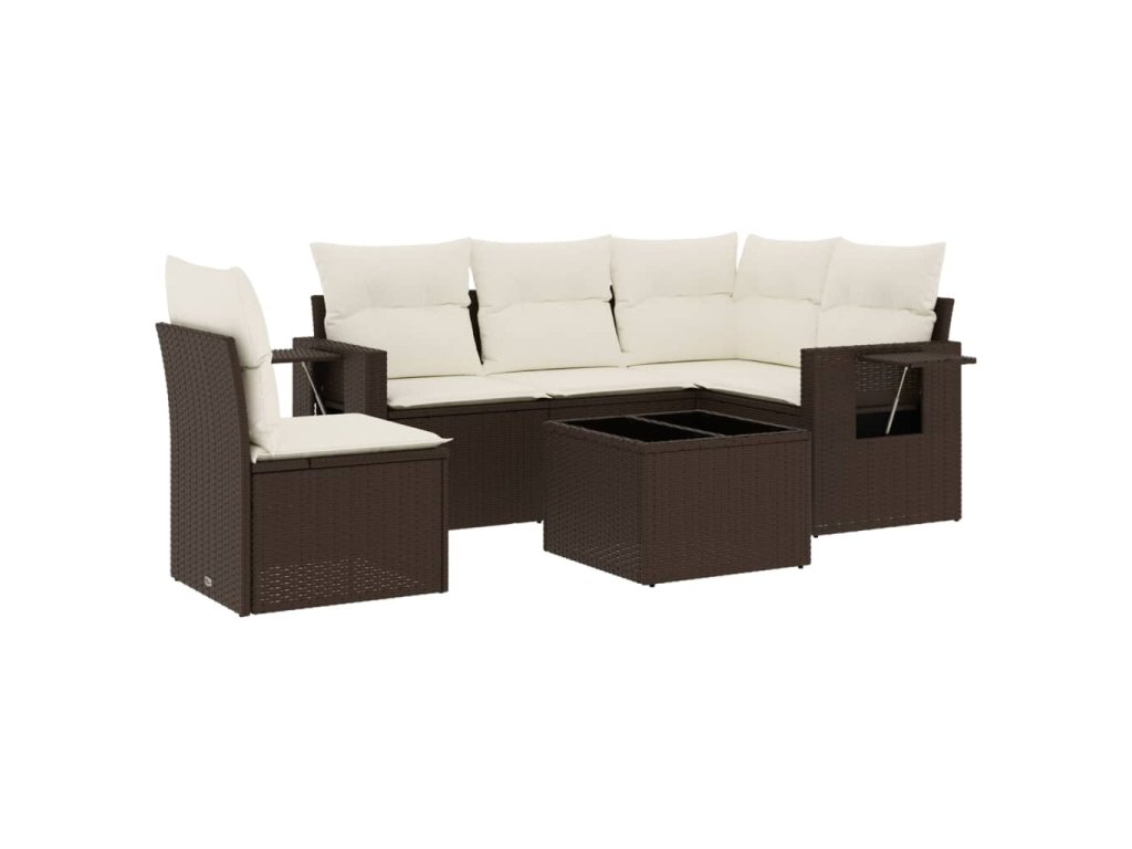 6dílná zahradní sedací souprava s poduškami hnědá polyratan 3252520