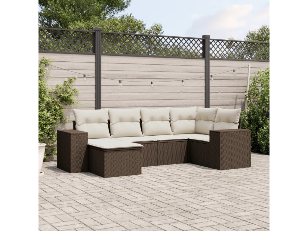 6dílná zahradní sedací souprava s poduškami hnědá polyratan 3255200