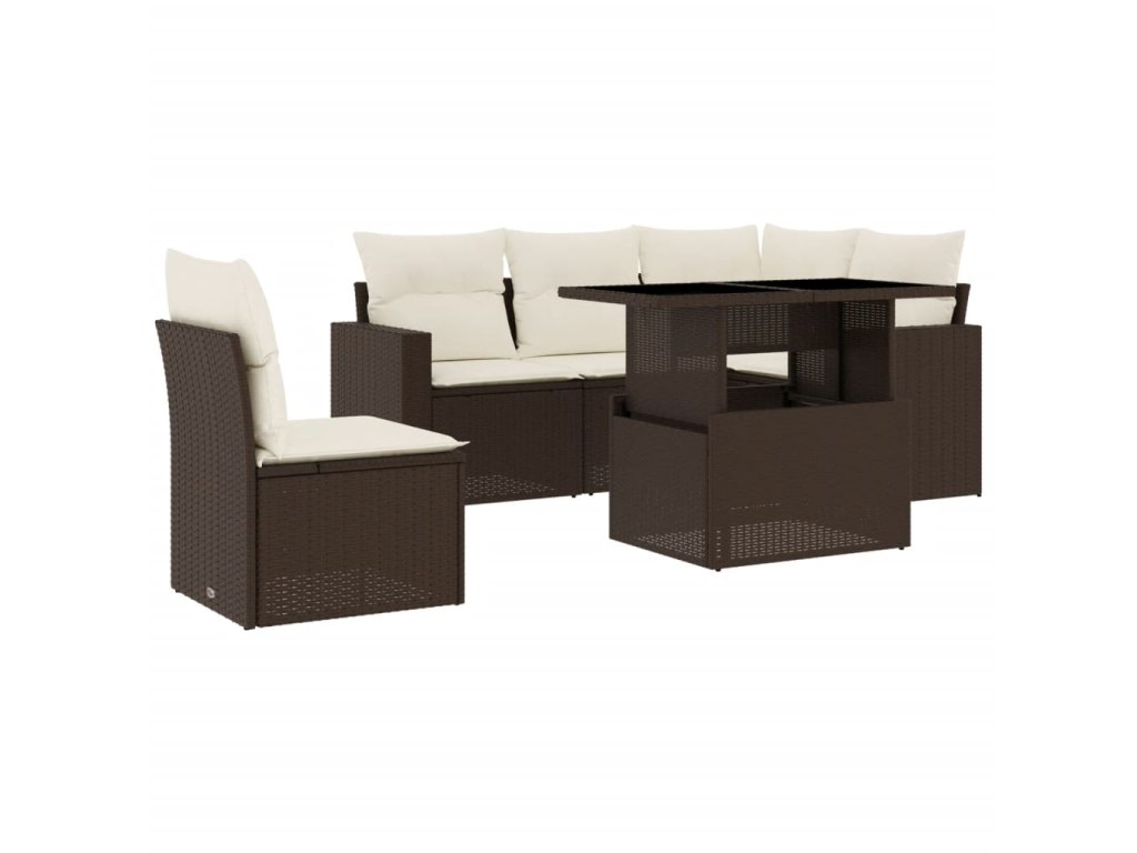 6dílná zahradní sedací souprava s poduškami hnědá polyratan 3267283