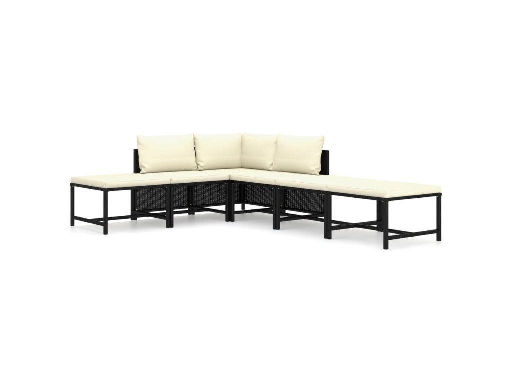 6dílná zahradní sedací souprava s poduškami polyratan černá 3059782