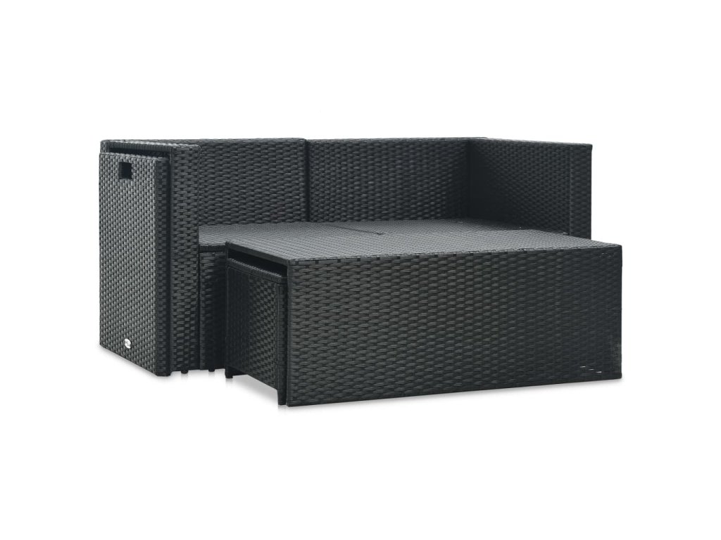 Tato sedací souprava je navržená tak, aby se podnožky daly schovat pod stolek a rohová křesla pod 2místnou pohovku. Proto, kdykoli potřebujte, můžete jednoduše ušetřit místo. Díly této zahradní sedací soupravy jsou navíc stohovatelné, takže nezaberou příliš mnoho úložného prostoru.