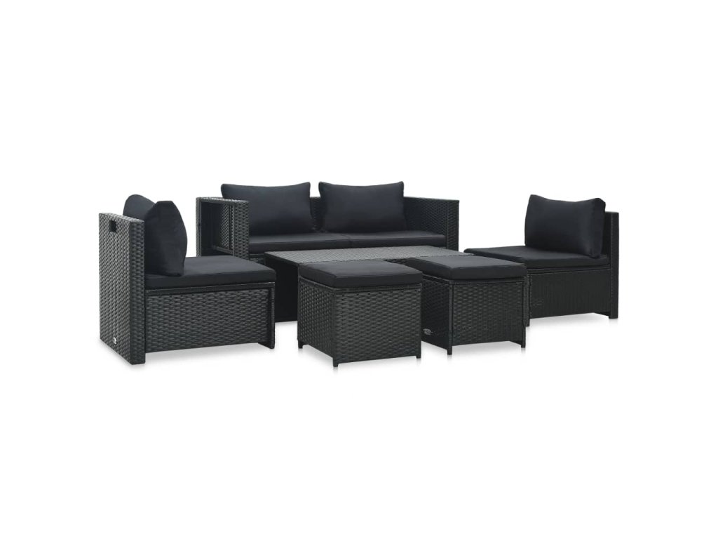 6dílná zahradní sedací souprava s poduškami polyratan černá 47809