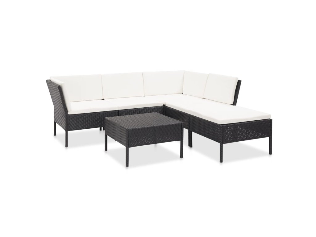 6dílná zahradní sedací souprava s poduškami polyratan černá 48940