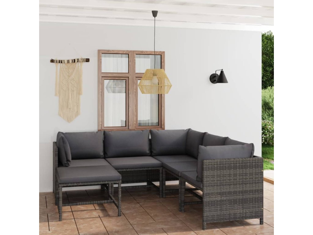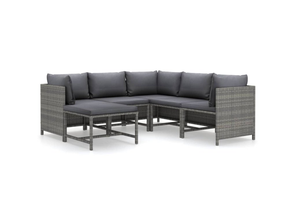 6dílná zahradní sedací souprava s poduškami polyratan šedá 3059760