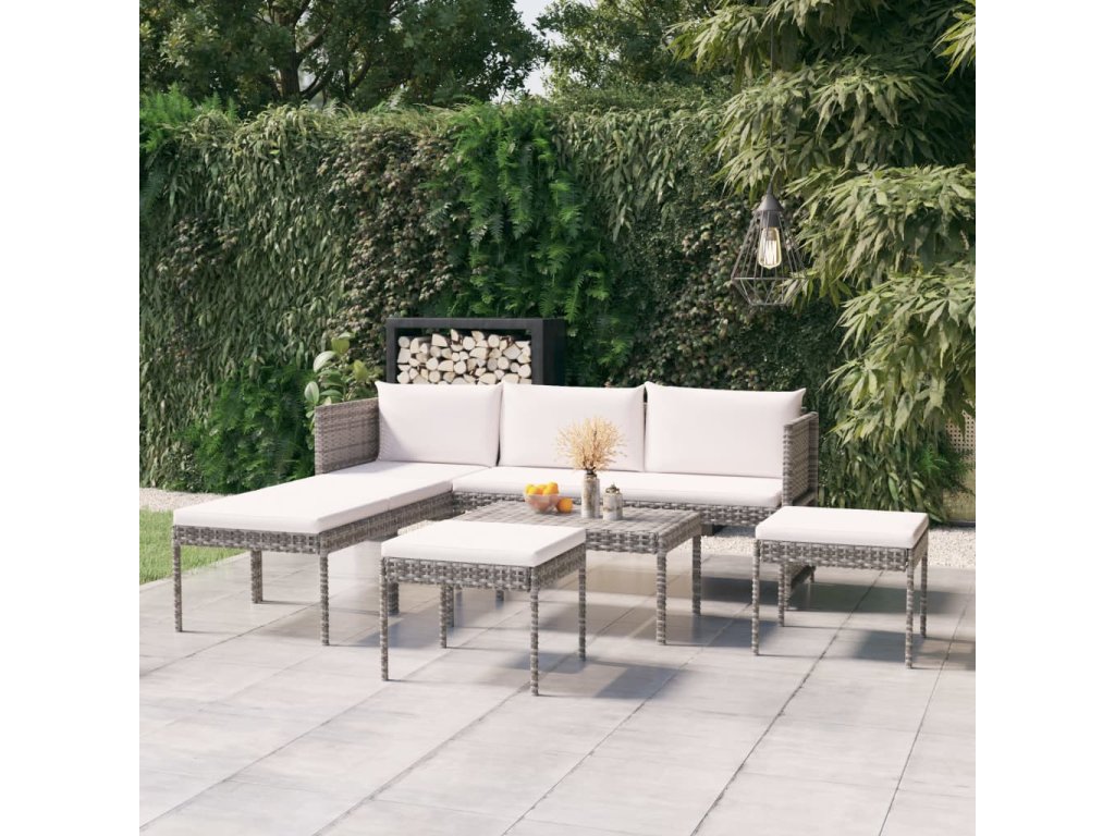 6dílná zahradní sedací souprava s poduškami polyratan šedá 313340