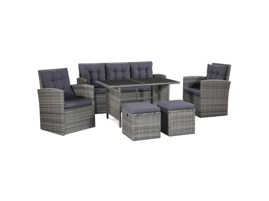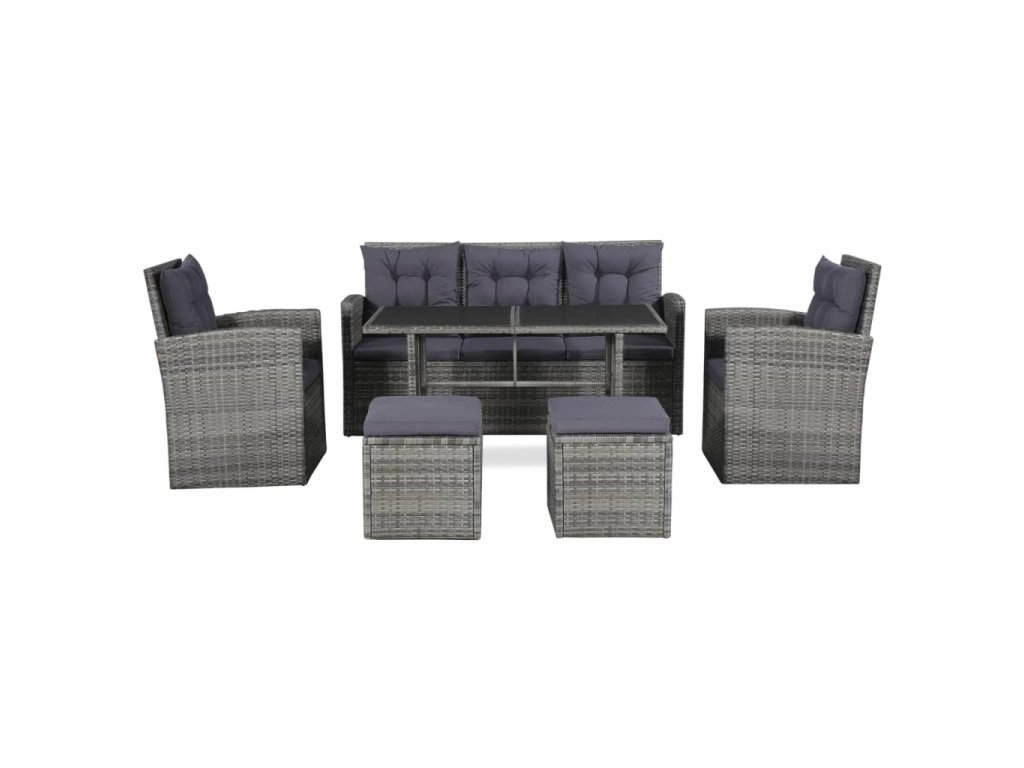 6dílná zahradní sedací souprava s poduškami polyratan šedá 43960