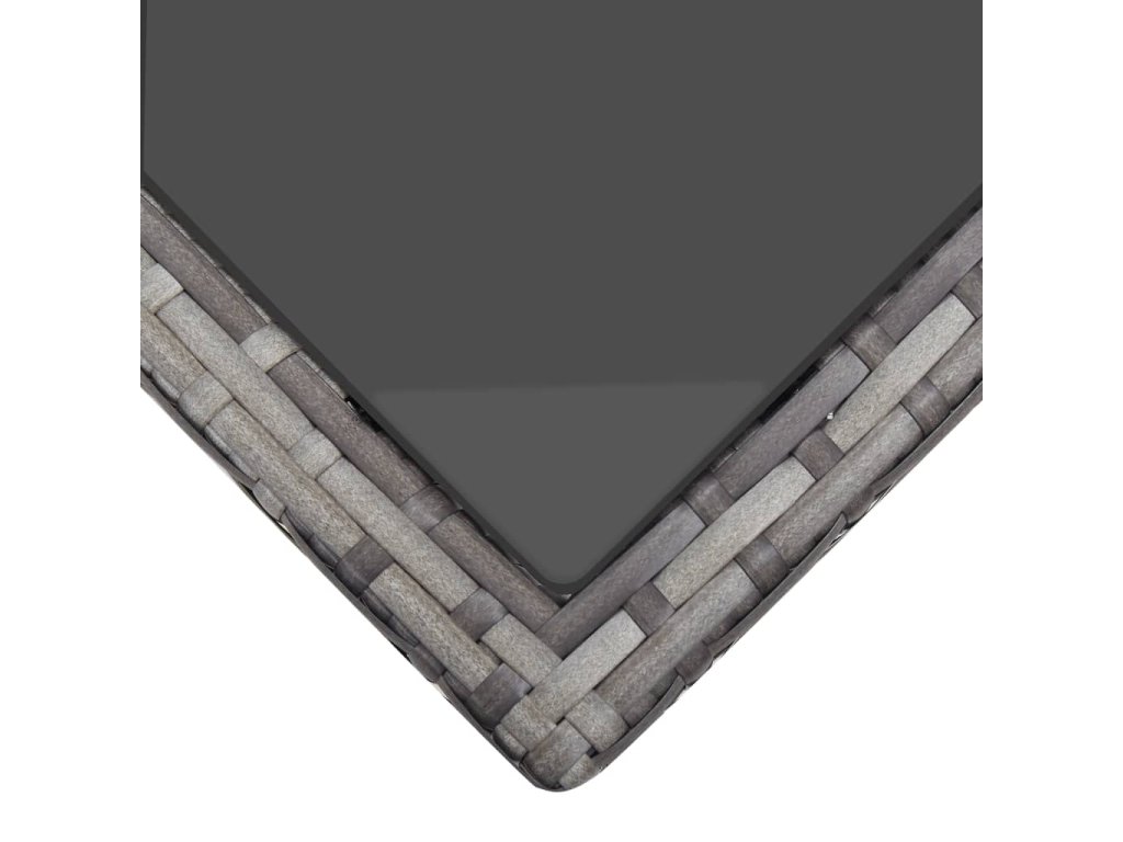 - Materiál: PE (polyetylenový) ratan + skleněná stolní deska + ocelový rám s práškovým nástřikem