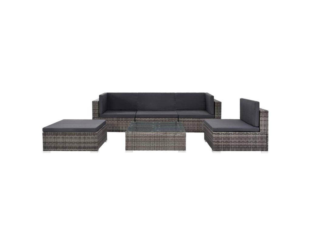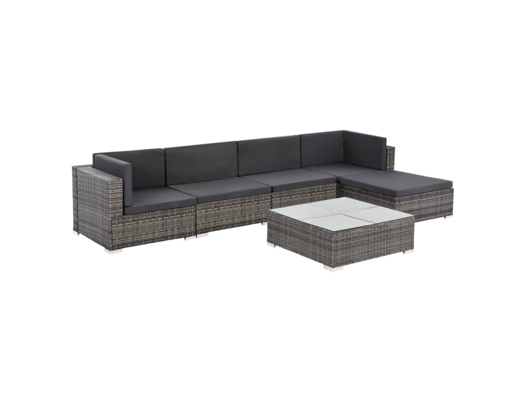 6dílná zahradní sedací souprava s poduškami polyratan šedá 44607