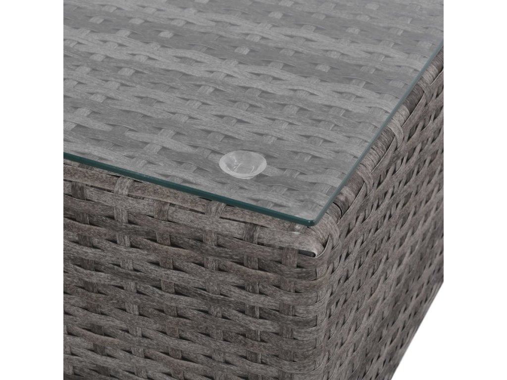 - Materiál: PE (polyetylenový) ratan + skleněná stolní deska + ocelový rám s práškovým nástřikem