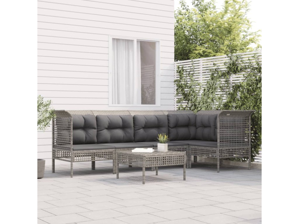 6dílná zahradní sedací souprava s poduškami šedá polyratan 3187508