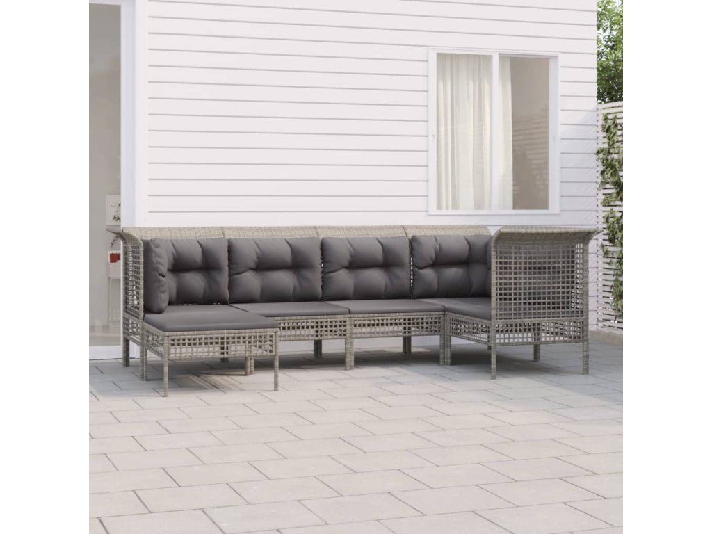 6dílná zahradní sedací souprava s poduškami šedá polyratan 3187548