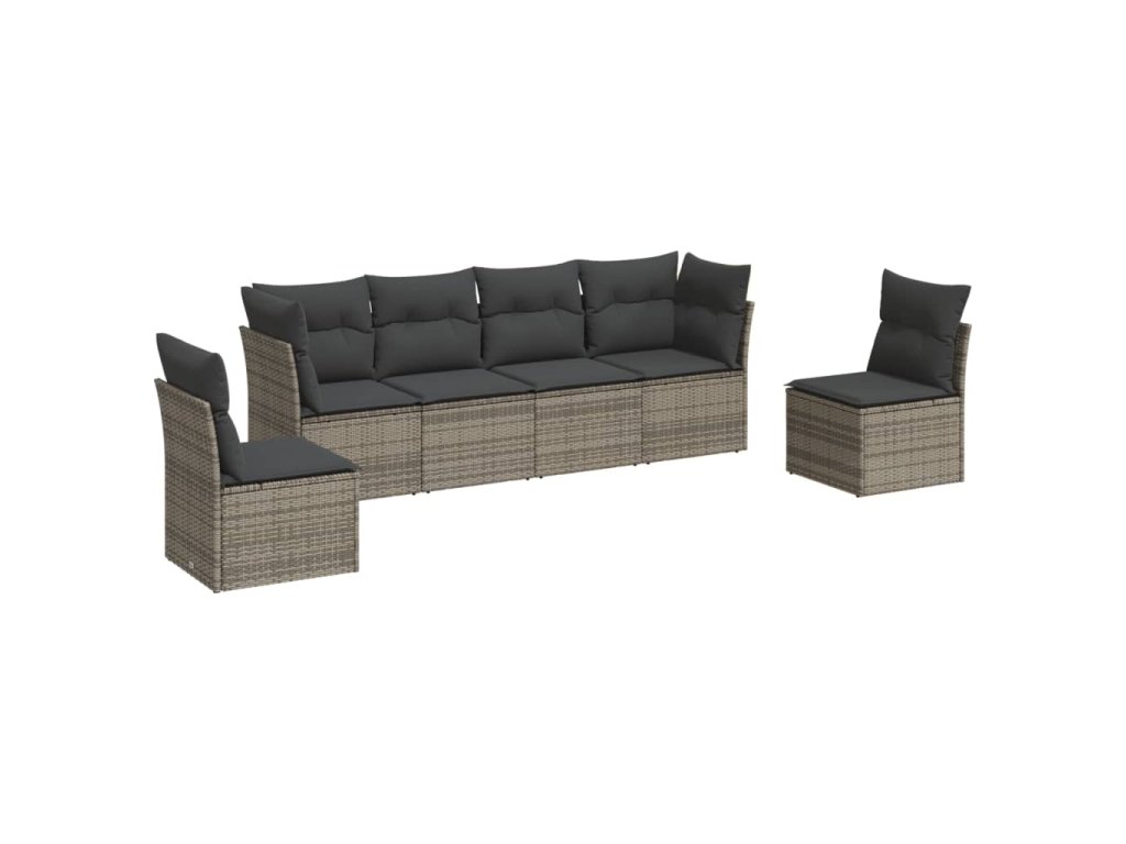 6dílná zahradní sedací souprava s poduškami šedá polyratan 3217370